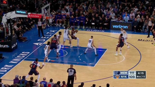 次节,灰熊试图通过加快进攻节奏缩小分差。次节开场,杰克逊二世在右侧底角接球,面对防守命中一记后撤步三分。但布里奇斯立刻用一次2+1回应,科勒克后仰跳投命中,迪亚瓦拉连得4分,尼克斯将分差拉开到22分。-17