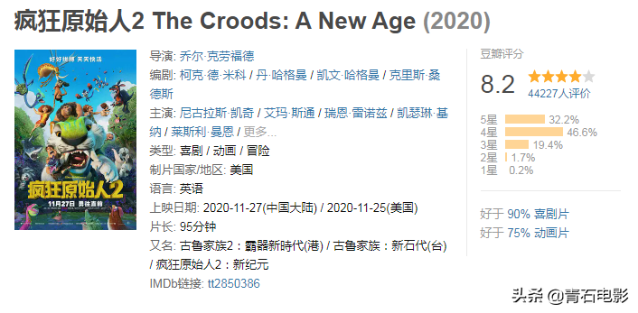 当看完这部电影后,令我感到震惊的是《疯狂原始人2》的豆瓣评分竟然如此之高,达到了8.2分?