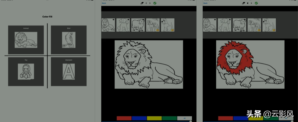 Color Fill Junior 应用程序被描述为一本自然的图画书。它提供各种以动物、字母、鸟类、玩具为特色的设计。是时候发现一个美妙的艺术世界了!