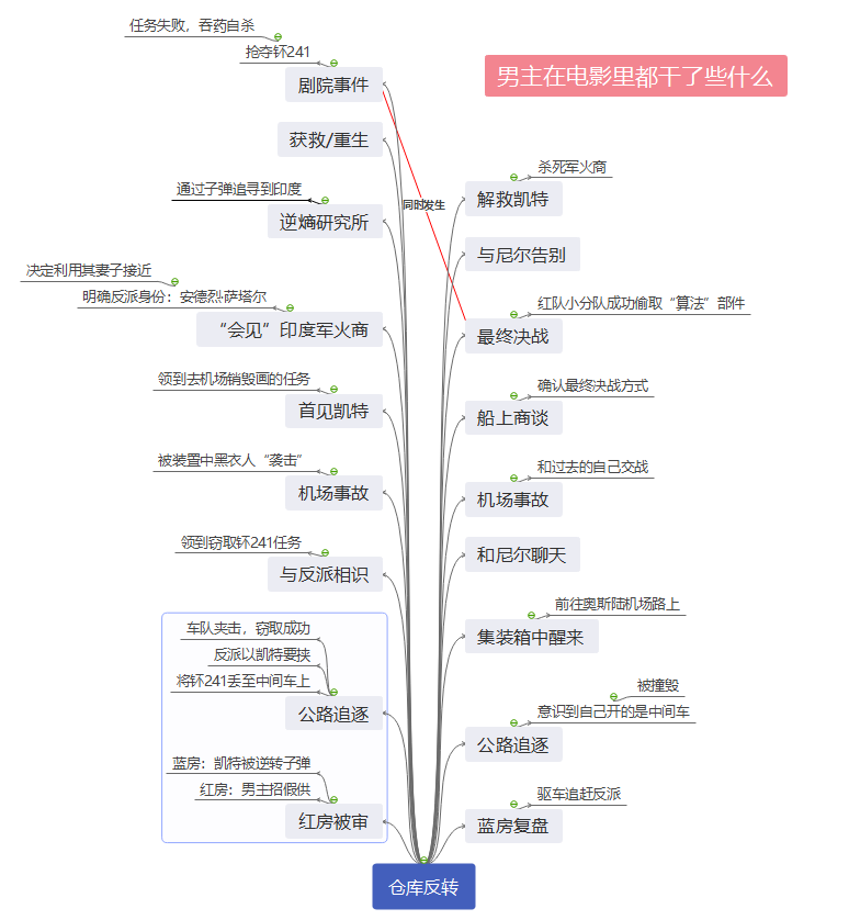 《信条》不玩点对点的一步到位,而是让角色在时间洪流中倒着“游”回去。