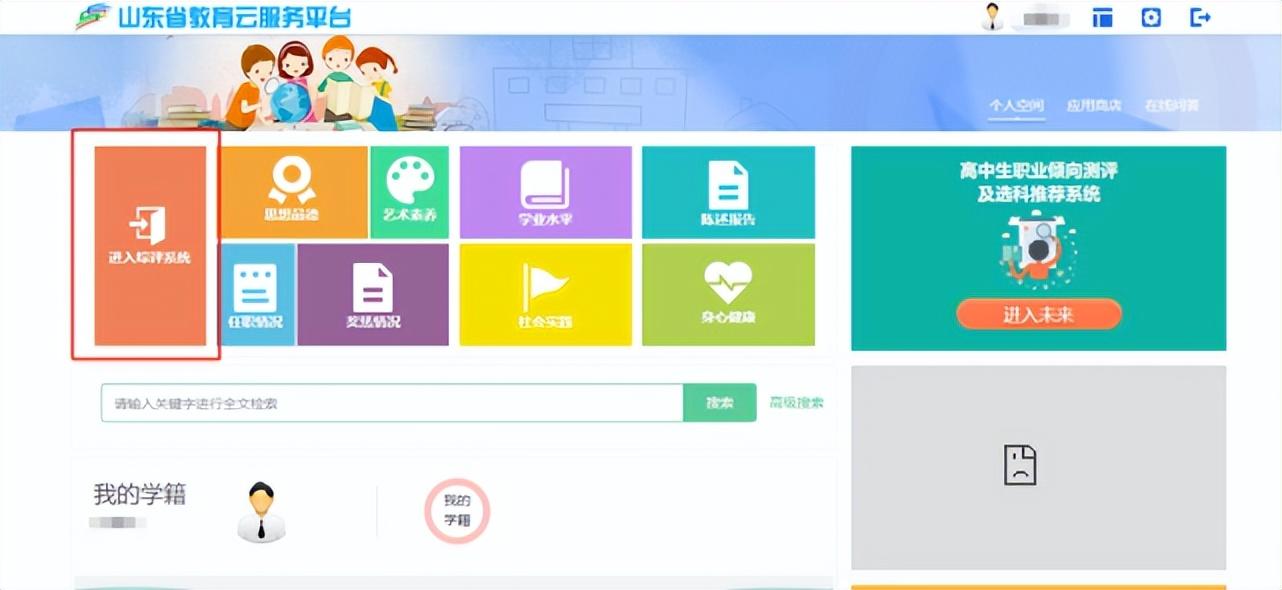 2)开始正式填写,如图可以直接进入综评系统 ,也可以先看看首页内容。