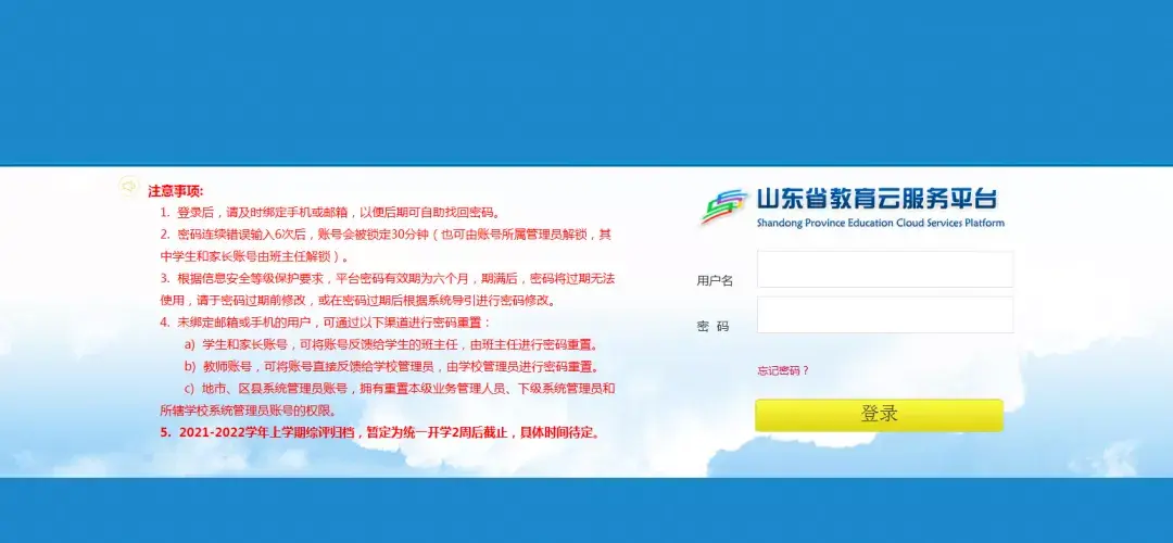 1、登录山东省教育云服务平台