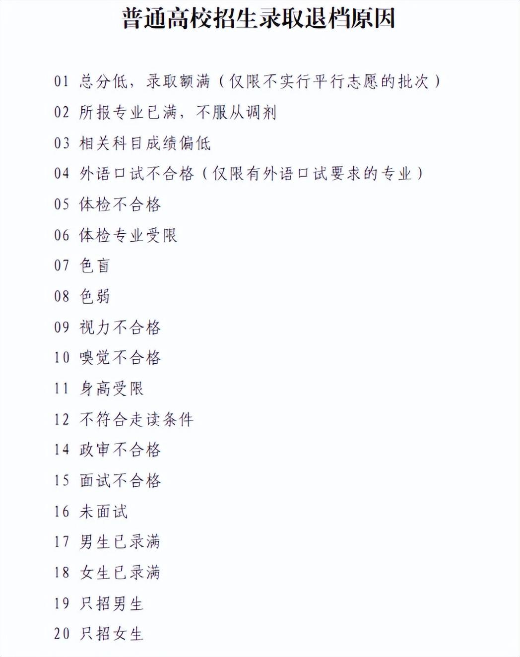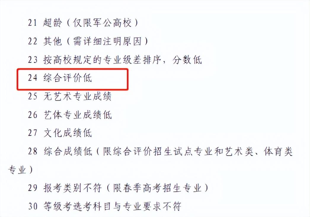 据悉,《山东省2021年普通高等学校招生录取工作意见》中普通高校录取退档原因第二十四条:综合评价低。