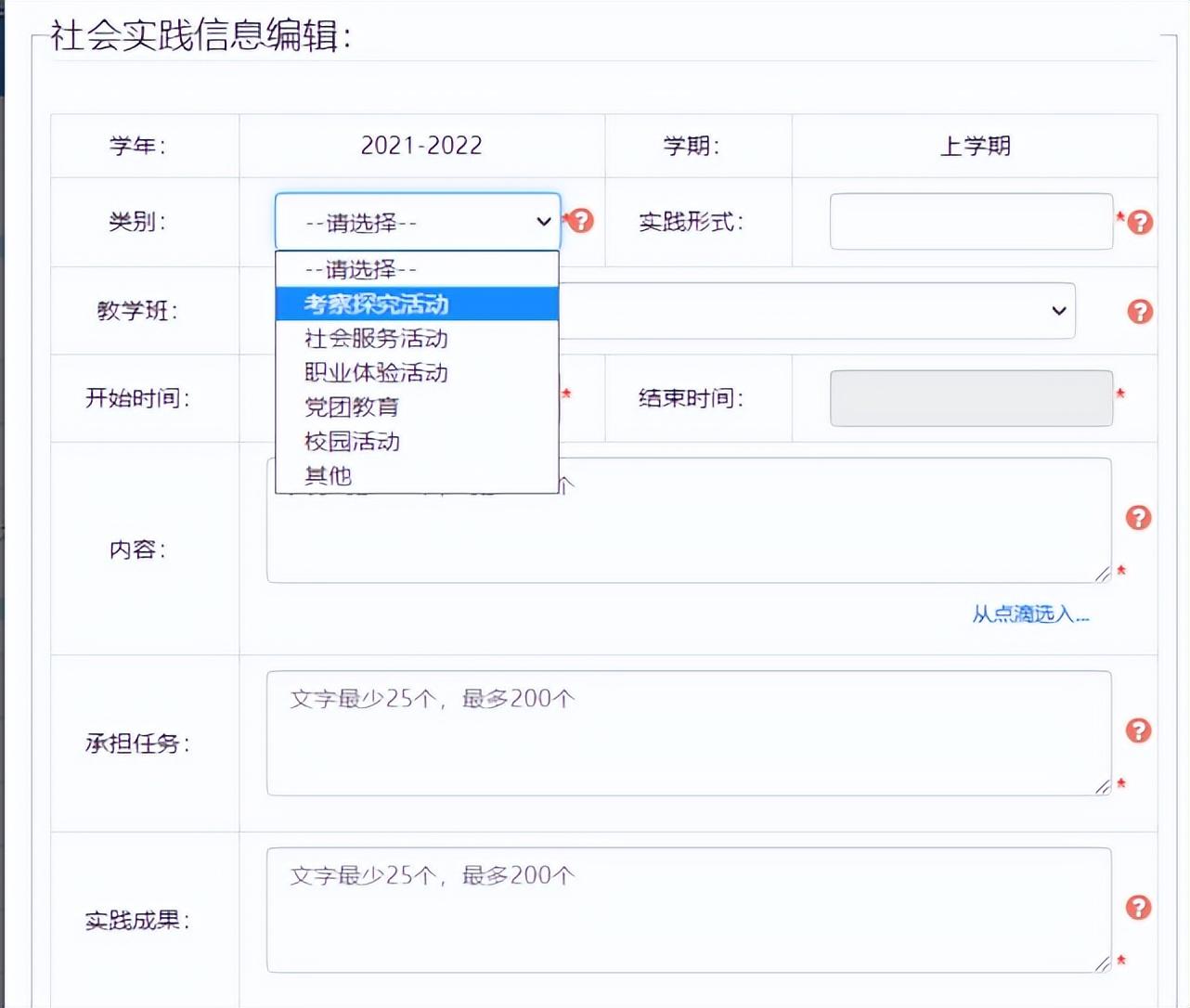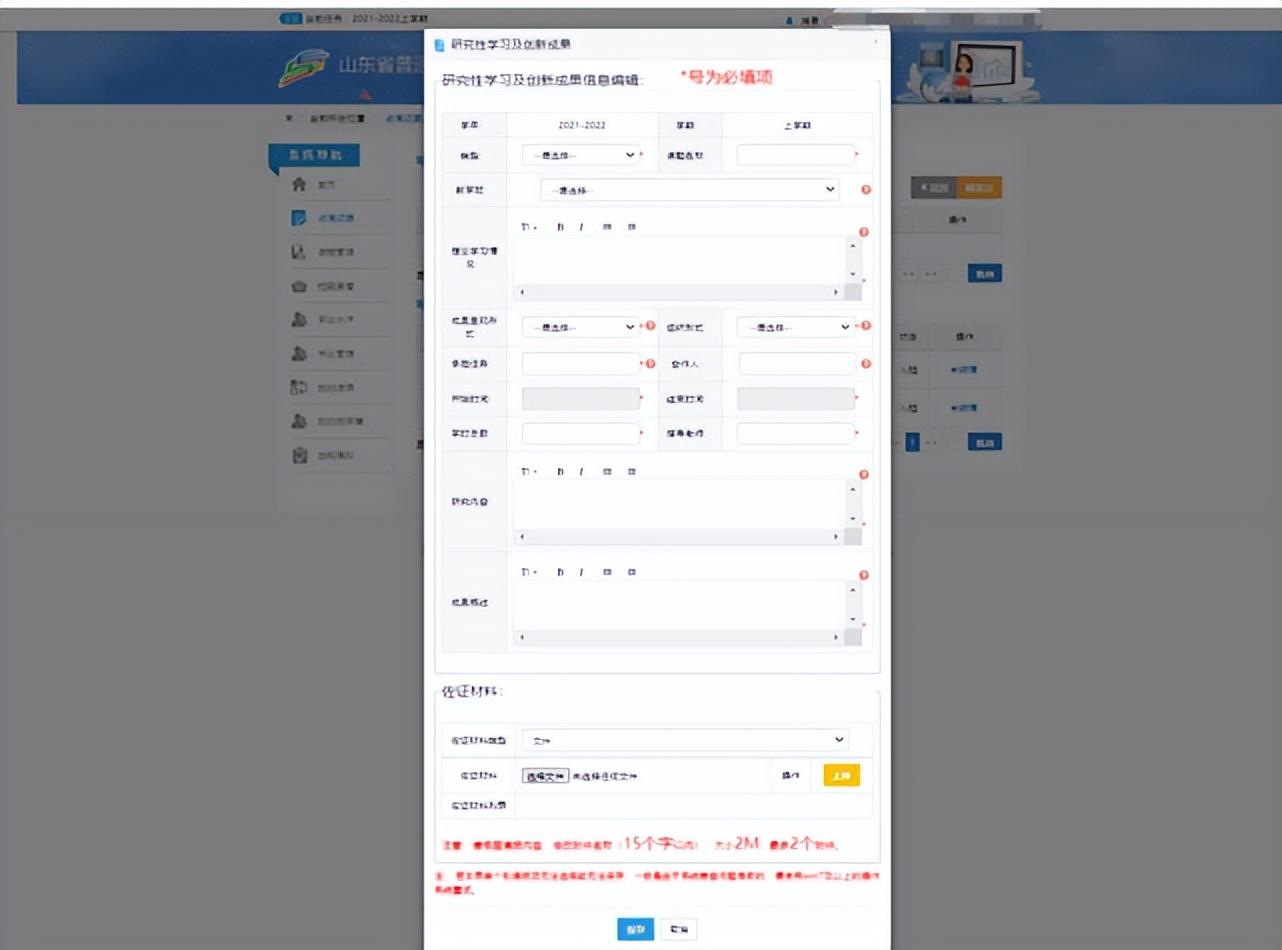1、记录学生日常表现,填写要求的奖项、调查报告、社会实践报告、研究性学习报告、作品等。