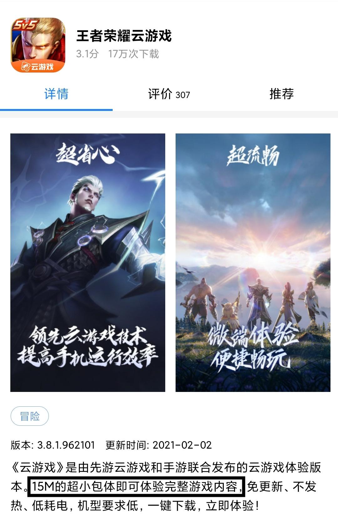 王者荣耀云版偷偷上架,匹配排位不耽误,15M内存,没无线别玩