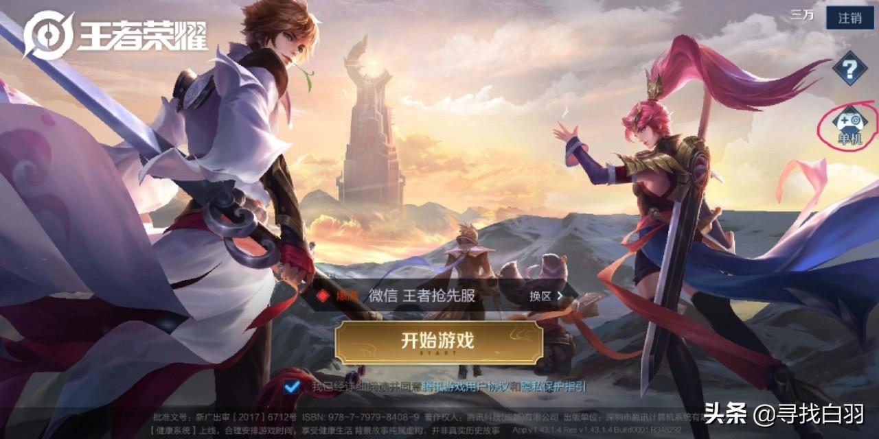 王者荣耀在17号将更新王者出征版本,这个版本可以说是将王者荣耀从新发布了一变,今天白羽在抢先服体验的时候,突然在进入游戏界面的右上角发现了一个单机模式。