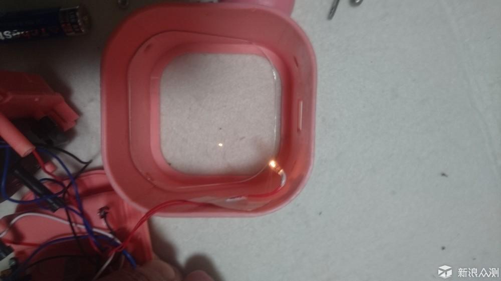 1.因为要避开线,所以必须拆开外壳,找到一个不用另外开孔的办法,从电池盒进线