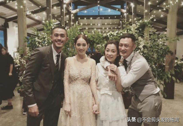 在余文乐婚礼上,余文乐搂着马志威的女友合影,感觉几个人关系都不错。