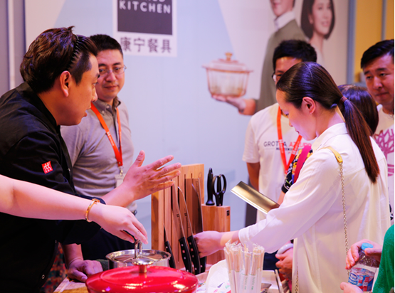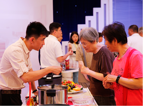 康宁、WOLL、菲仕乐、双立人四品牌的厂商代表们现场演示旗下产品的使用方法,并邀请会员朋友们进行品尝,解答会员在使用产品中所遇到的问题。