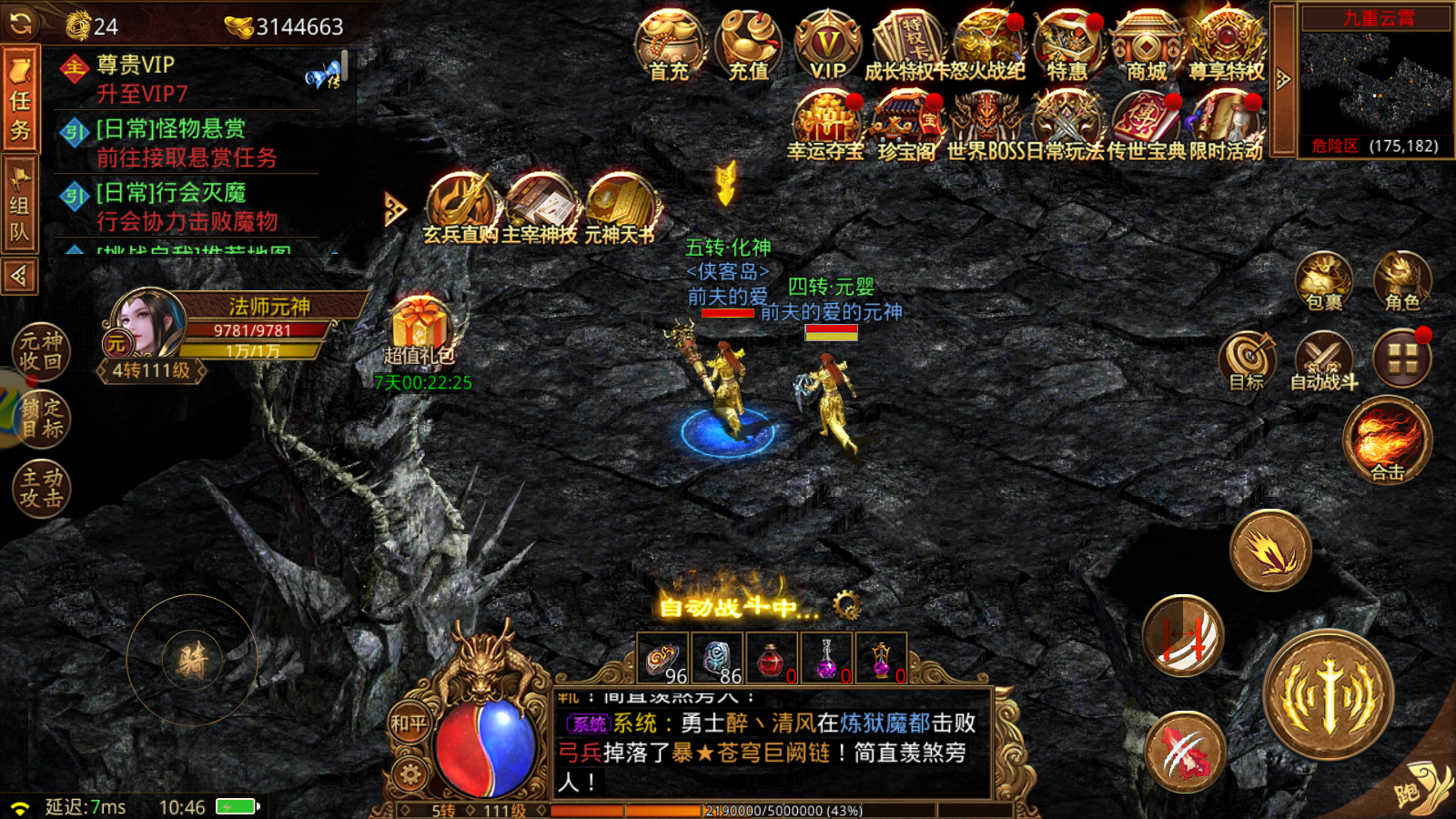 每日副本任务:每日任务普通玩家每天有三次进入机会,贵至尊员五次进入机会!进入后四方怪物会聚集到中间位置,击杀完后会出现第二批怪物,一共四批怪物,最后是一只DOSS,杀死DOSS后送出相应物品和等级以及属性点。此副本等级和属性点不限制,永久添加!!!!此副本一共分为8个阶段,通过杀死DOSS后再次进入,自动进入下一个阶段!一个阶段比一个阶段难,每个阶段给与的奖励也越来越多!请朋友们积极参加!