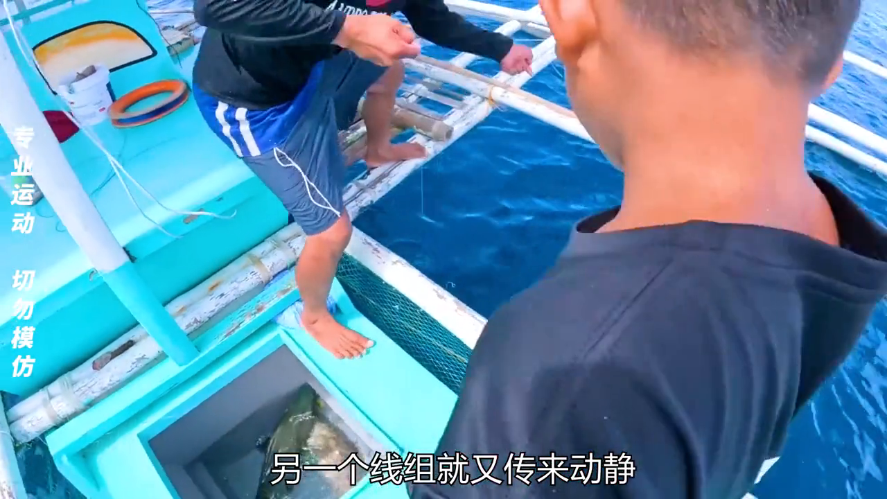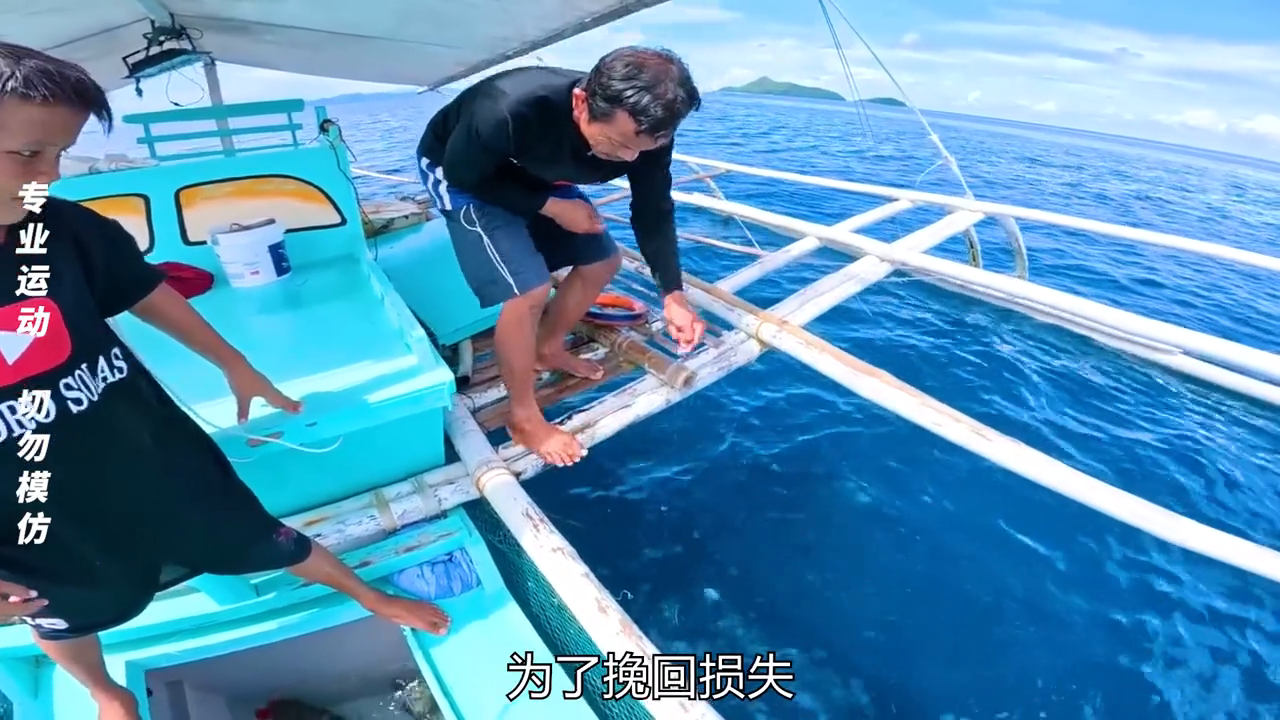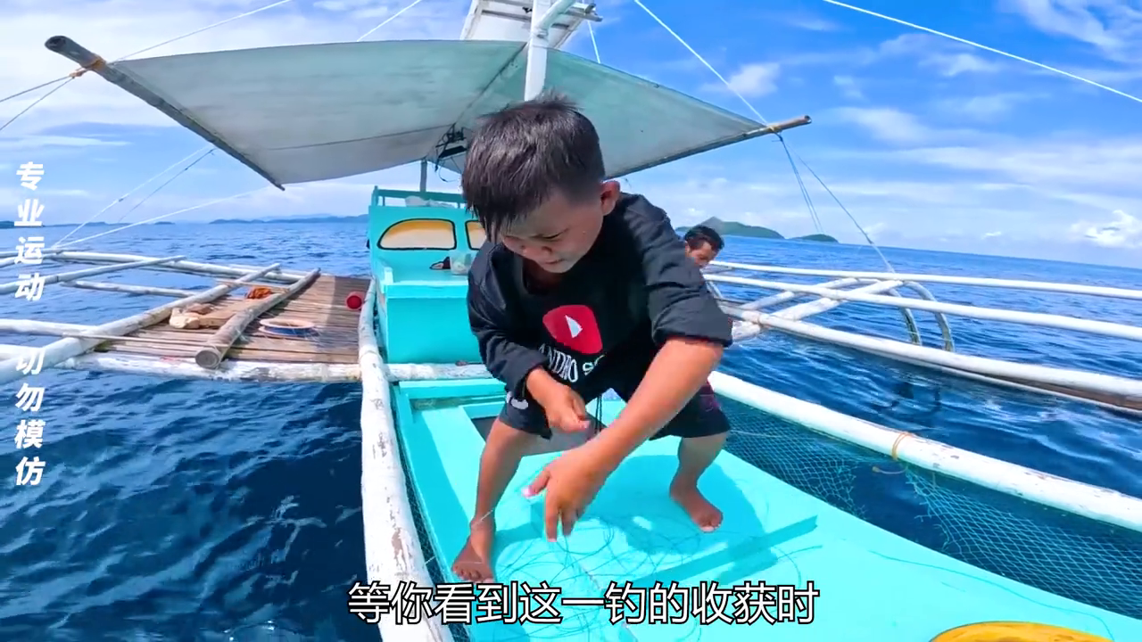为了挽回损失小娃娃一头钻进船舱,拿起一条青斑就直接扔进海里。然而这一钓的收获绝对让你大吃一惊。诱饵放到底后他仔细的感知着线组的动静。巨物咬钩的瞬间他也一并发力回收线组。你别看他年纪不大,但拉线刺鱼的动作那可是相当专业。唯一的不足可能就是力气稍微小点,好几次都差点被巨物直接拖下海。