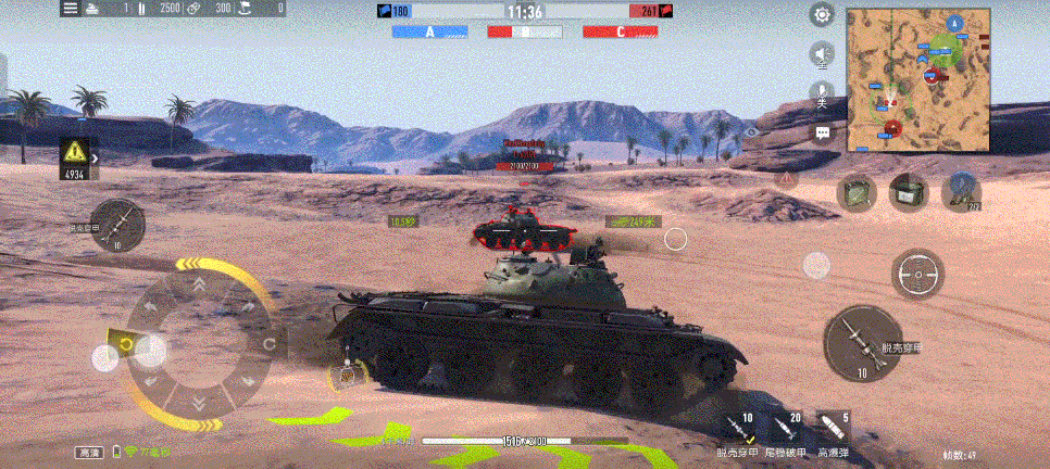 说起这个游戏来,整个的操作界面有点类似吃鸡界面,比如左下角是方向,旁边是开炮;右下角是开炮和瞄准镜;左上角是战况统计; 中间是双方实时剩余数量;右上角是地图和语音设置。