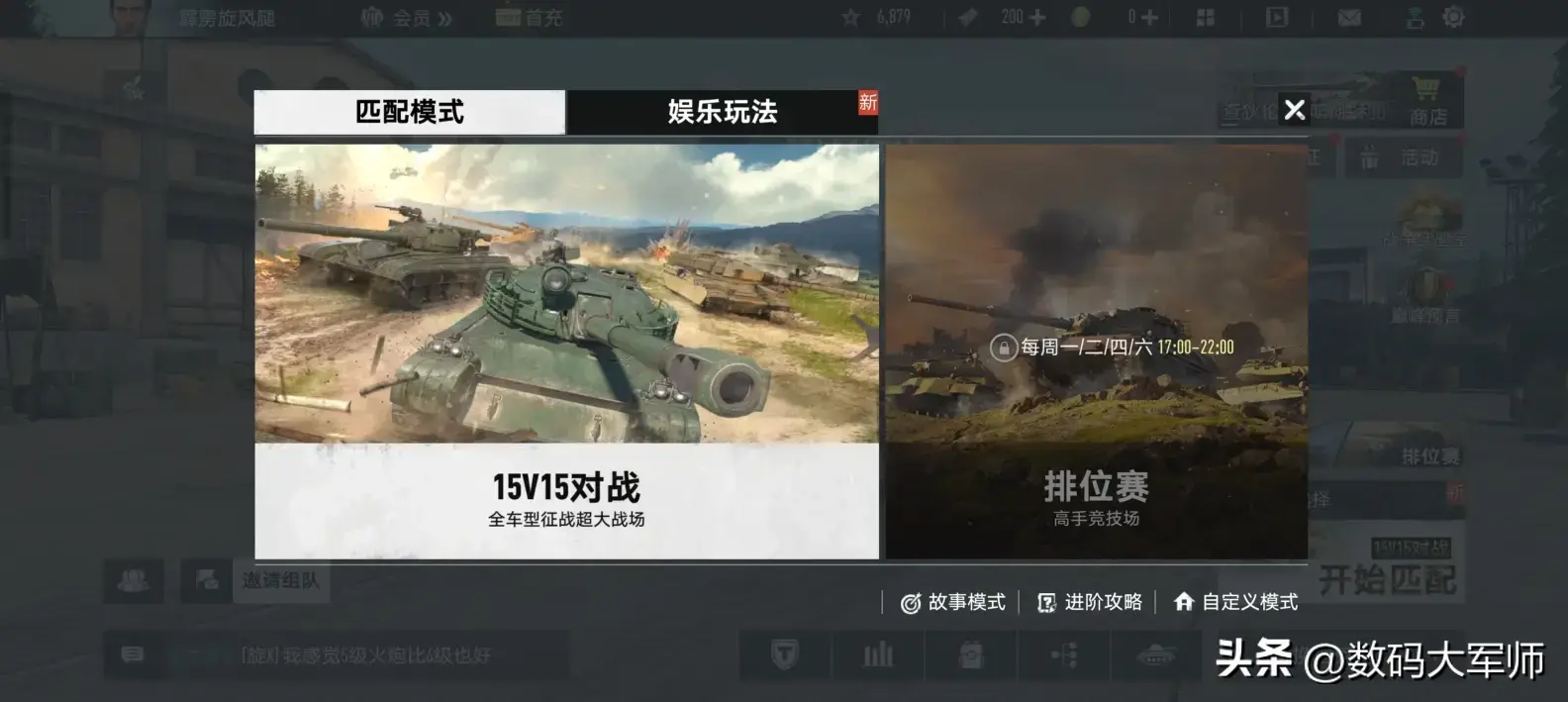 目前这款游戏主要有两种作战模式,分别是15V15对战和排位赛 ,其中排位赛是有时间的,不是每个时段都有。15V15对战是可以不限时玩的,每局对战都是随机匹配,作战地图也是随机出现。
