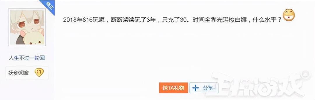 近日一位《古剑奇谭OL》玩家“人生不过一轮回”在网上发帖问网友“自己30块钱白嫖游戏三年是什么水平?”此话一出,立刻就震惊了不少网友的三观,纷纷表示这位玩家是老白嫖怪。