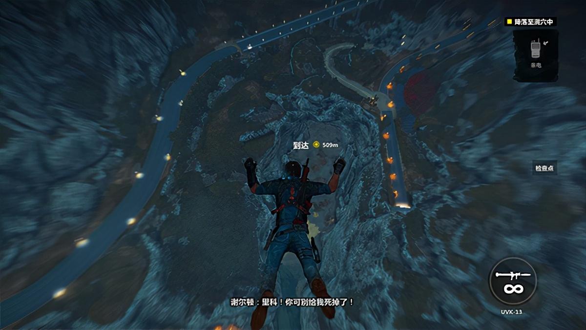 8、之后会让你降落到一个地点,可以点击空格键开启降落伞;