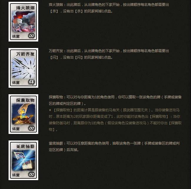游戏融合西方卡牌类游戏的特点,并结合中国历史,以身份为线索,以卡牌为形式,合纵连横,经过一轮一轮的谋略和动作获得最终的胜利。