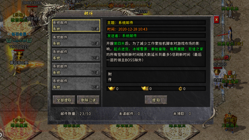 正常氪金玩家开服都会先充一个武林至尊或者最强王者的钱,领取称号后送的材料可以直接前往第二大陆刷好装备,充值的钱可以在商店买技能(官方承诺商城不售卖任何装备)。随便在第二世界刷一刷装备就可以去高级地图刷神器,魔器了,基本上氪金玩家两天号就能成型。