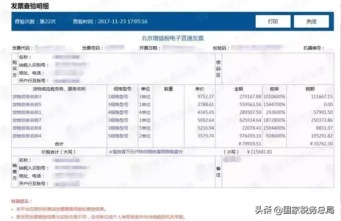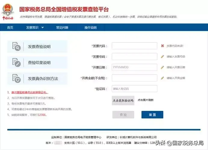 (5)每天每张发票可在线查询次数为5次,超过次数后请于次日再进行查验操作。