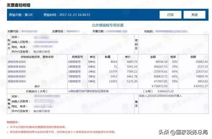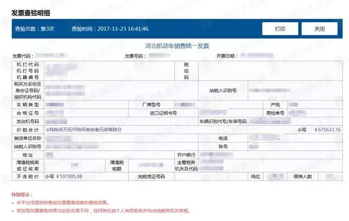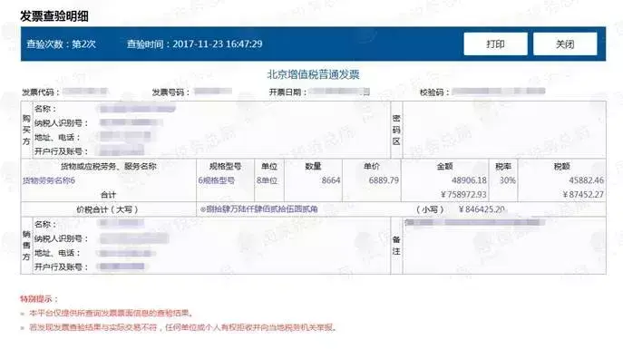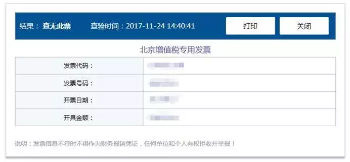 (6)本平台仅提供所查询发票票面信息的查验结果。如对查验结果有疑议,请持发票原件至当地税务机关进行鉴定。