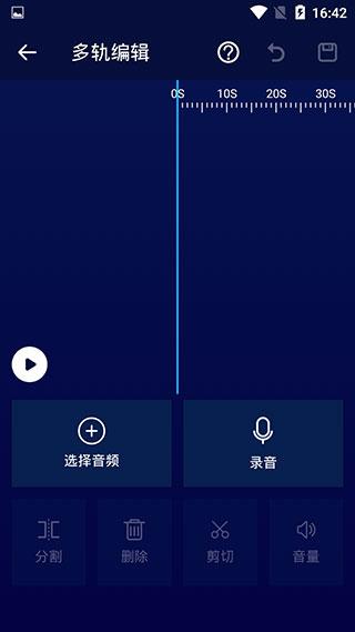 1、软件支持多音轨添加、编辑,通过导入本地音频文件或者直接录音获取种子文件。2、支持音频分割。通过滑动黄色时间线,快速定位分割点,一键分割。3、多功能同时运行,你可以边开启背景音乐、边录音,这样完成后就是一个完整的带有背景音乐的录音,同样你也可以给录音后加背景音乐。4、音频播放速度调整,这个并非仅仅是试听调速,而是调速后直接改变音频的播放速度,彻底改变!5、软件还可以实现音频倒放、指定左右通道的音频、添加回响效果、将对象渲染混合为片段、动态调节背景轨道的音量等功能!6、有了它,你就可以非常轻松的编辑自己手机的录音和其它音频文件了!