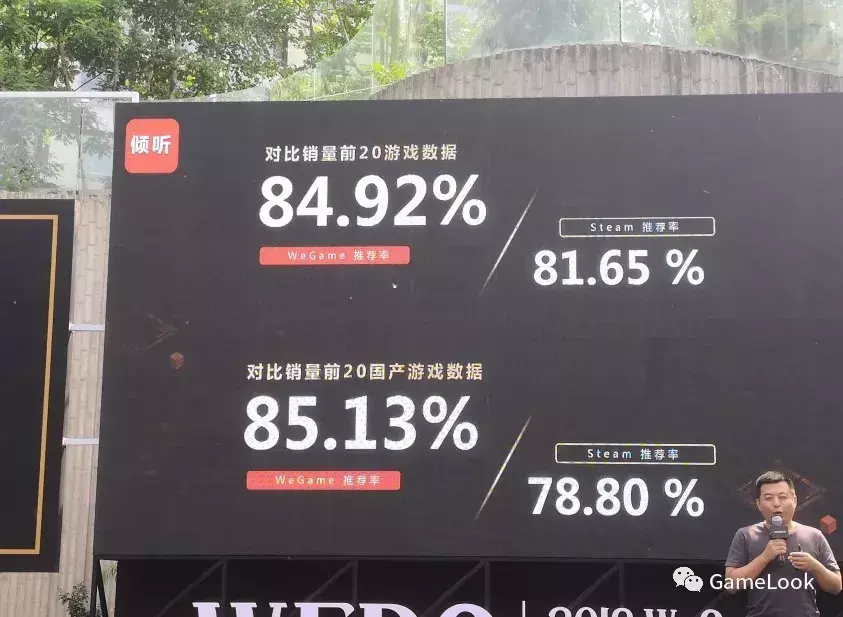 做了这些之后,我们这里也有一些数据分享,在WeGame平台上,我们挑取了销量前20名的游戏以及前20名的国产游戏做了一个对比,相对于友商的平台,我们的好评率和推荐率更高一些,当然这并不是我们刻意去提高的,而是在保证公正可观的基础上做了很多引导工作,让用户产出更真实的评价,不受其他因素干扰,我们发现友商平台最近也在跟进这个策略。