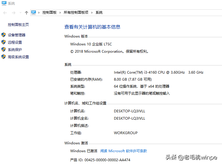 如果此系统确实是正版的,那么在基本信息中就会有微软的显示,否则就是盗版的了。