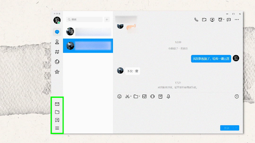 新版 QQ 的三栏式界面在使用时会方便很多,用惯了桌面端微信的小伙伴会对此深有体会。