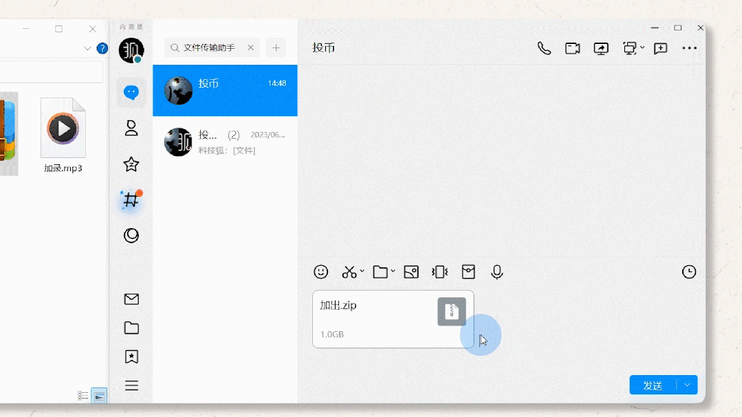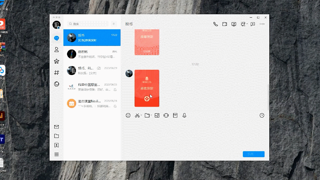 在旧版 QQ 中,语音消息和 QQ 红包被放在输入框上方工具栏的“…”里。