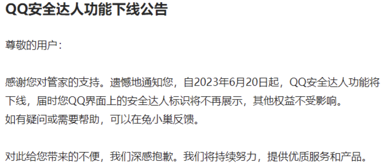 今天是 6 月 21 日,目前 QQ 安全达人已经下线,也就是说,之前用户获得的安全达人图标,现在在 QQ 界面没有了。