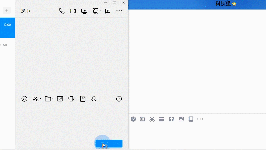 例如鼠标移至左侧一栏的图标上,不会显示该图标名称,而在聊天界面,会显示图标名称。