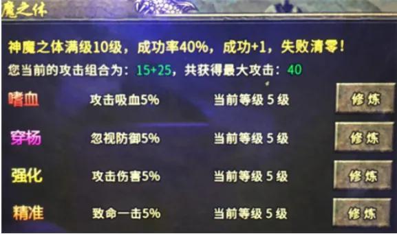 2、将镇世魔功升满第一卷,倍攻直接翻6倍