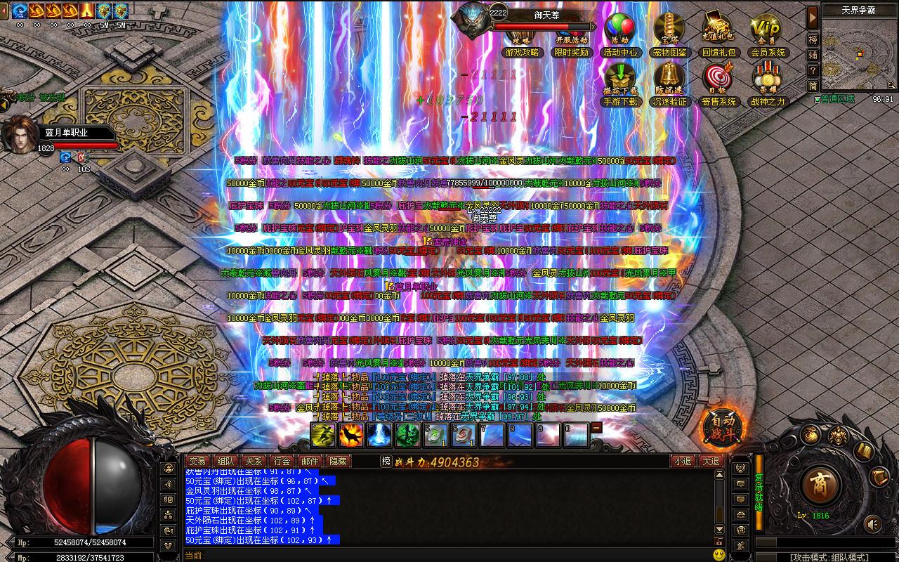 4、财宝放送:杀死地图内的BOSS,可以爆出大量货币,红包,RMB点,天葬令牌等奖励!散人玩家必争活动!