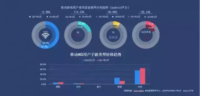 此外,根据TalkingData在去年Chinajoy期间发布的的数据显示,移动游戏用户设备联网分布趋势,在4G网络方面有明显增幅的增长,增长率达到了114.23%。从这些数据中不难看出,越来越多的玩家将自己的流量花费在游戏上。