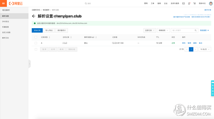 点击后台左侧菜单域名>解析设置>添加记录>记录类型A>主机记录自定义一个名称(记下来),保存。点击右上角用户图标accesskey获取ID和KEY(记下来)。