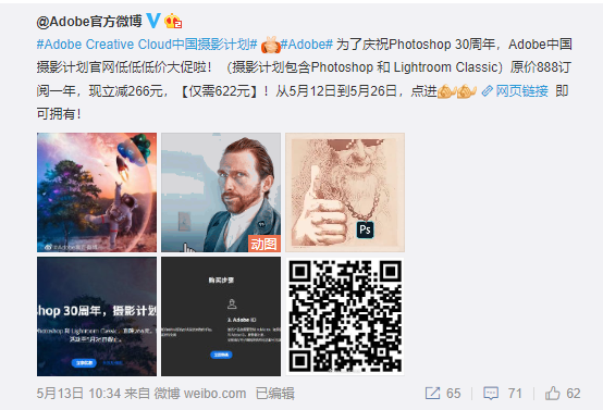 听说Adobe在庆祝Photoshop发布30周年搞了一个大促。原本888一年的摄影师计划现在变成了622。简单说就是你每个月花52块钱,就可以使用正版的Photoshop和Lightroom。