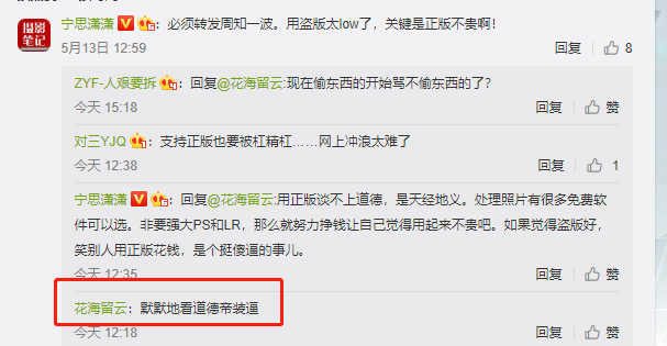 说真的,在我的认知范围,我很难想象2020年了,居然有人说用正版就是道德帝,不不不,宣传用正版就是道德帝。