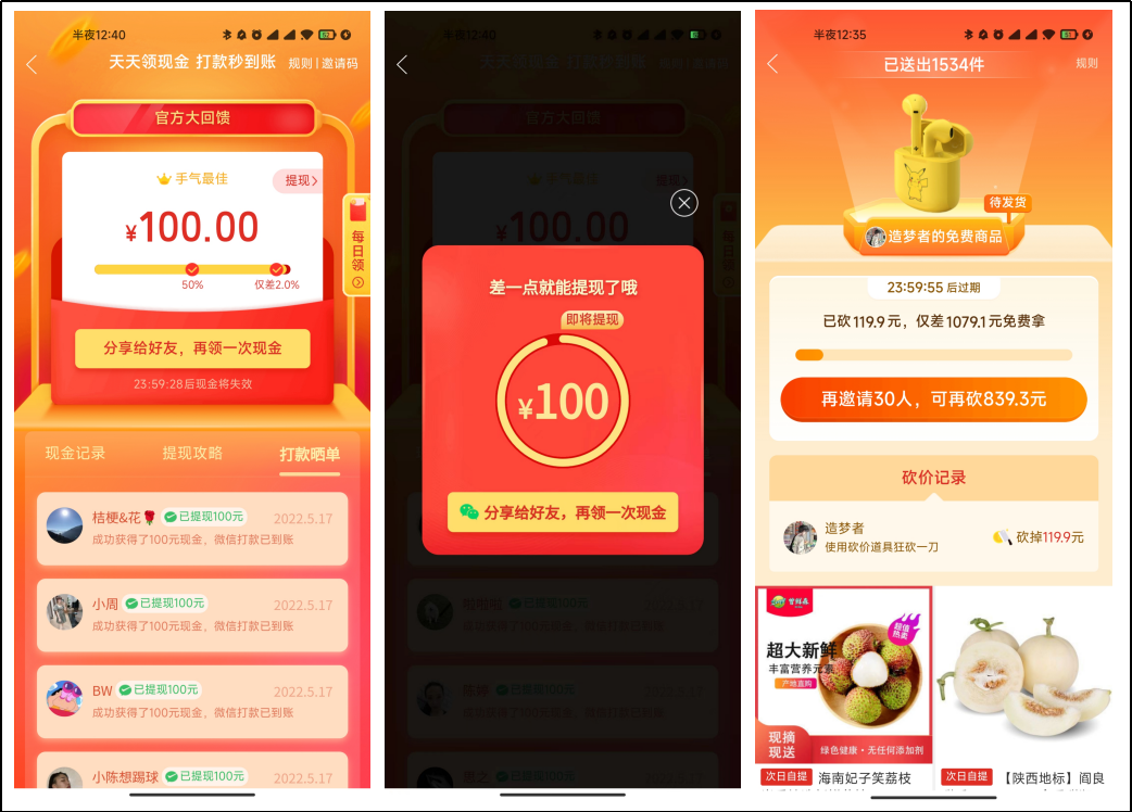 不愿意付出时间,那邀请好友,同样可以享受权益!没有几个人能拒绝拼多多的砍一刀吧?看着即将到手的百元大钞,叫几个朋友帮忙砍一下算得了什么。