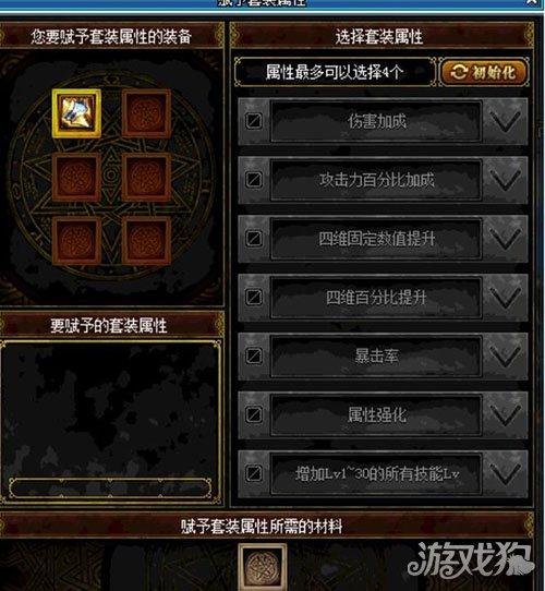 最后一项就是套装属性了, 这估计的需要点时间, 你的把自己需要的装备弄成套装,然后可以通过这个机器,选择这个套装要加的属性, 这是完全让自己打造装备啊, 虽然策划这个想法很不错, 但是很多玩家吐槽这样的属性真的很渣!