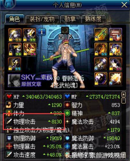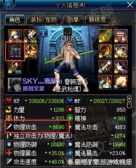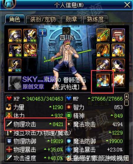 再换上增加物攻的斗气下装时, 面板又增加了近200点: