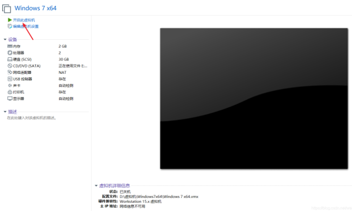 8、转到创建的虚拟机页面,点击“开启此虚拟机”。