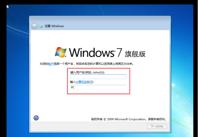 17.安装完成后,出现以下屏幕,输入用户名和计算机名,自己编写,然后单击下一步。