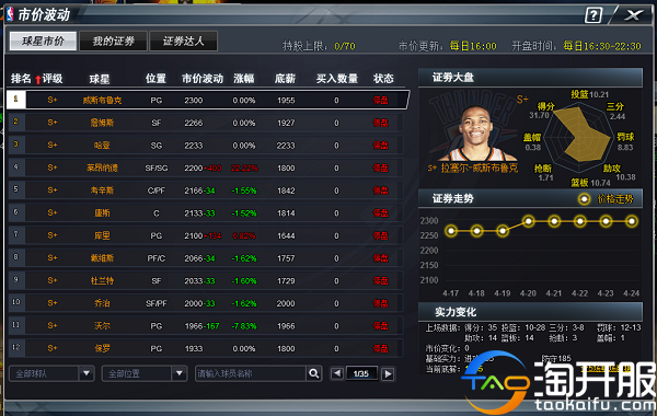 篮球经理还有这特殊的市价系统,市价系统关系到玩家游戏中球员的工资,球员市价的涨跌情况会根据现实中球员的真实比赛数据进行计算获得,而玩家在游戏中可以选择投资球员,并根据球员的表现获得红利。此外,游戏中玩家还有着特殊的招募教练,排位赛等多种游戏玩法,让玩家可以在游戏中感受到不一样的游戏乐趣。
