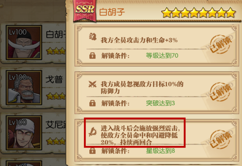 所以老沙要搞一个,不用8星,6星即可。但要特别注意给老沙堆闪避(还要嗑闪避药),千万不能让老沙被扣血,为此助战方面可以带上个老白,能降低对面命中从而提升我方闪避(如果发现还是闪不动,就再加几个降命中的助战)。
