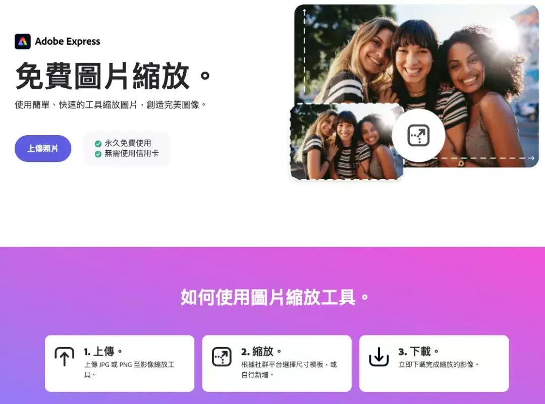 很多社交媒体或者网站,都会有图片上传的限制,这个 Adobe 官方的工具能帮你缩放图片的同时,不影响图片的质量。