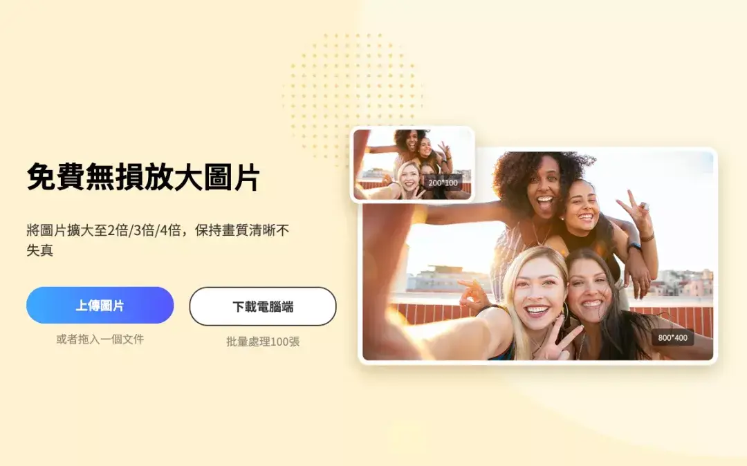这是一个可以免费无损放大图片的工具,可以在线使用,也能下载电脑端 ,电脑端可批量处理。