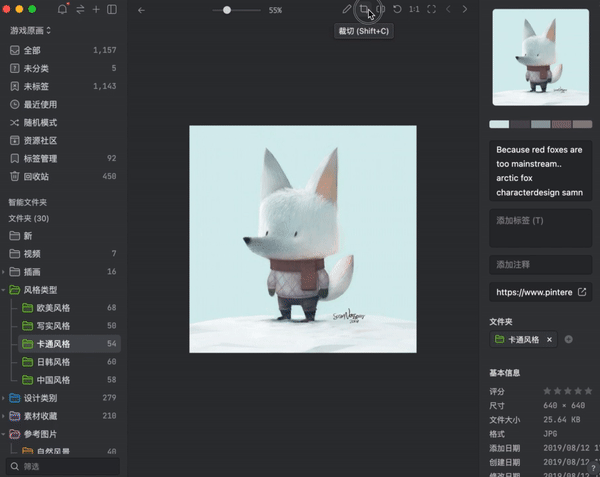 Eagle 内还有不少能帮设计师快速处理图片的高效功能,比如快速裁剪图片: