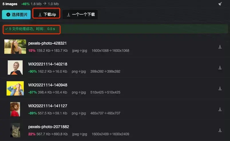 转换完成后网站提供压缩包下载,非常便利高效。