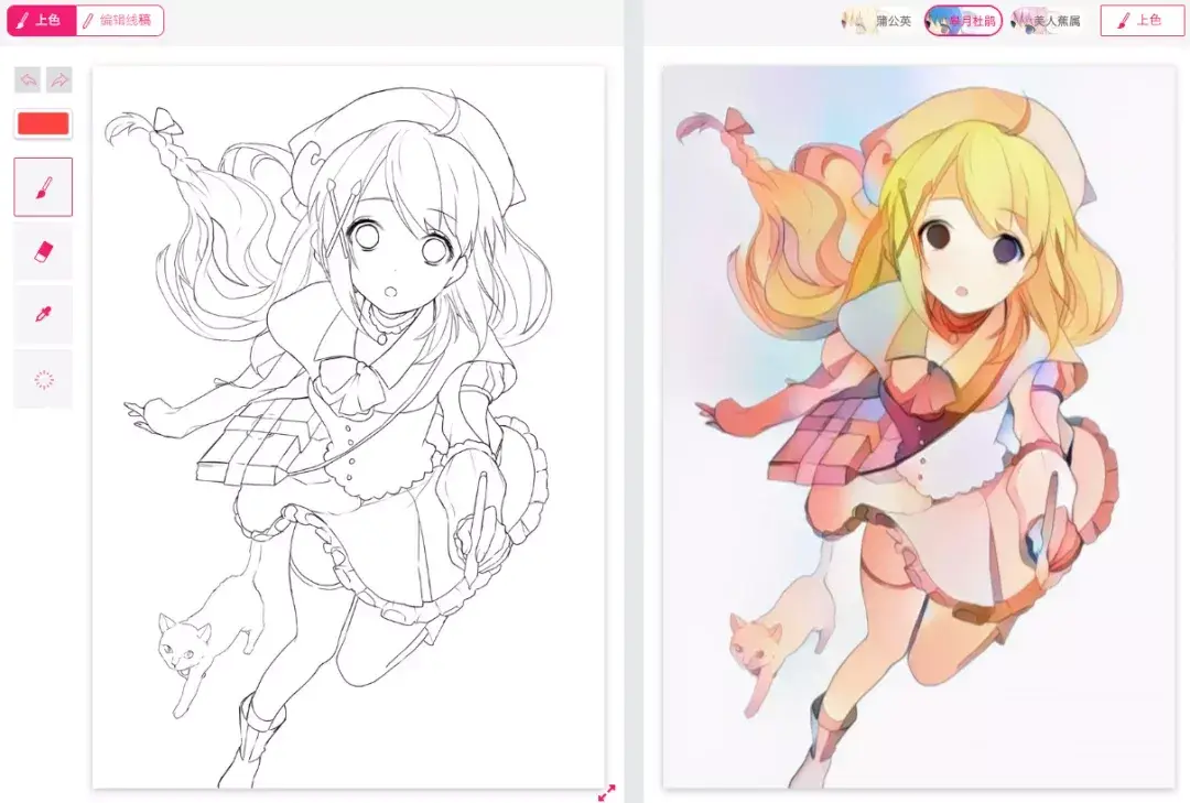 只要你上传绘画草图,就能使用这个网站全自动上色,自带三种配色预设。