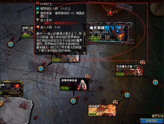 打魔界裂缝,等于免费的90级深渊,一天10次。魔界裂缝门票【精炼的时空石】---》在【中间之门】”红色魔女“处用时空石购买,时空石魔界地图掉落材料,重点无法交易。