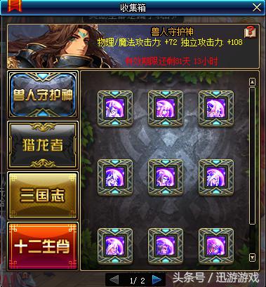 收集箱的部分实际上并不强求,因为需要春节礼包或者金币购买相应的宝珠,虽然宝珠没有时限,但是收集箱属性是有时限的。当然,要想更大化提升自己的伤害,收集箱就是必不可少的提升手段,满级属性为物理/魔法攻击力+72和独立攻击力+108,对于任何职业来说都是不小的提升。